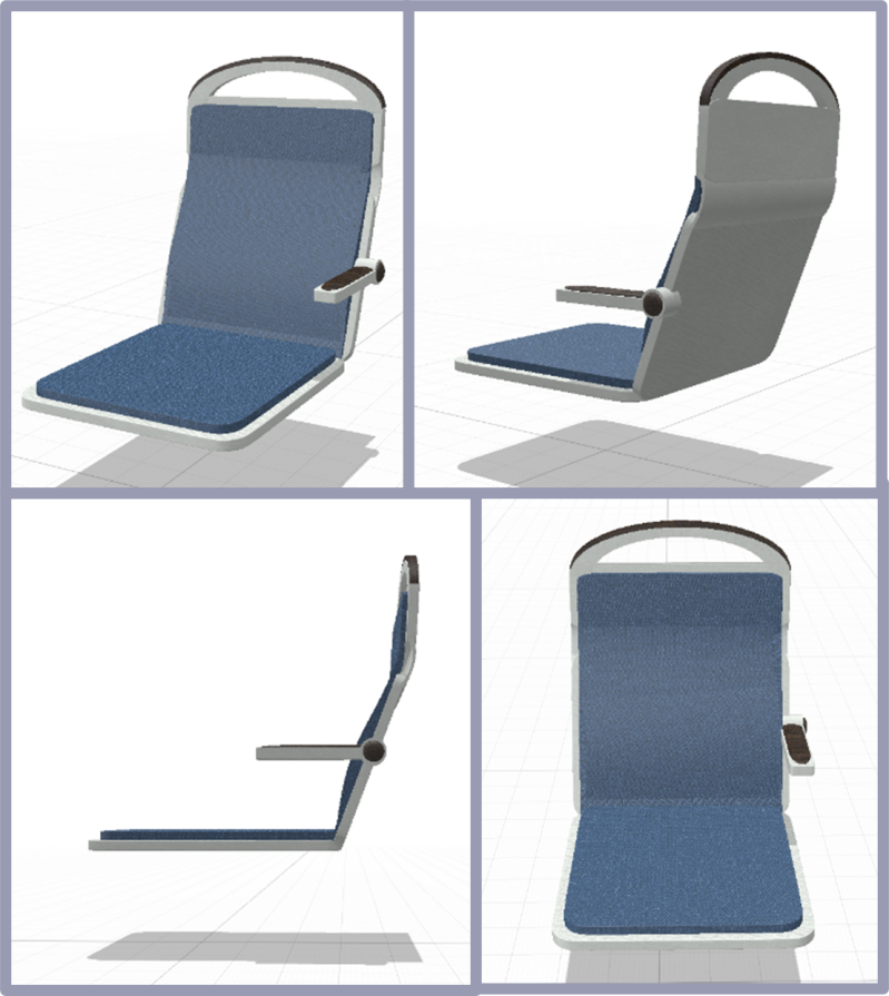 Voor het ontwerp zonder eisen is een nieuwe stoel ontworpen. Die is hiernaast te zien. De vorm is gemaakt naar aanleiding van onderzoek naar de ruggengraat. Dit onderzoek is te lezen in het eindverslag. Ook alle kleuren en materialen zijn onderzocht. Een kleine samenvatting: hieronder zijn twee belangrijke kleuren in de nieuwe bus te zien. Deze zijn gekozen naar aanleiding van onderzoek. Hiernaast is een patroon te zien die zelf is ontworpen, op basis van onderzoek naar patronen.